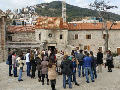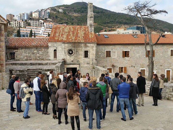 ** 10h: Besplatan razgled Bd za početnike kursa, studente turizma i sve koji su željeli da se prijave. Od nekropole pred Avalom i Veljih vrata ulicom od Šetnje došli smo do trga Pjesnika, potom obišli rimski žrtvenik, antički ulaz Budve iz 4 v. prije naše ere, trg od Crkava i antički mozaik vile Urbane u crkvi Santa Maria in Punta, Arheološki muzej, Pjacetu Urbanu, Spomen dom S.M.Ljubiše, arhiv grada i Modernu galeriju.